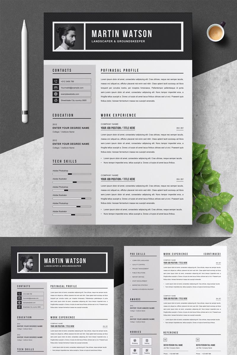 Download Резюме "Watson Resume Template" / Watson Resume Template - Резюме на тему графика 2 page resume clean cv cover letter design template illustrator eps mac pages microsoft word modern photoshop psd professional
