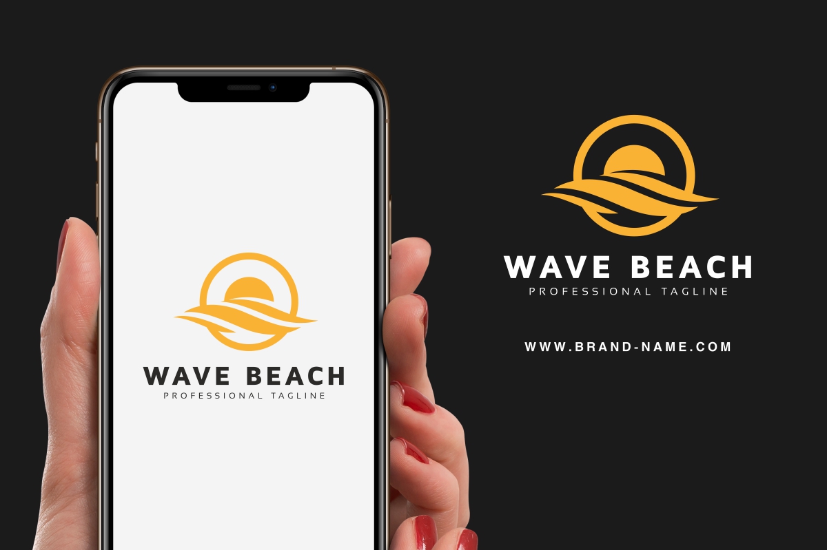 Download Шаблон логотипа "Wave Beach Logo Template" / Wave Beach Logo Template - Шаблон логотипа на тему графика beach,beige,blue,green,hotel,ocean,orange,red,resort,sea,shell,tourism,wave