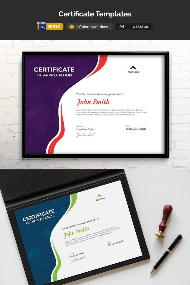 Download Шаблон сертификата "Waves Certificate Template" / Waves Certificate Template - Шаблон сертификата на тему графика certificate,certification,template,psd,print,appreciation,achievement,waves,flyer,brochure,polygon,pattern,background,geometric