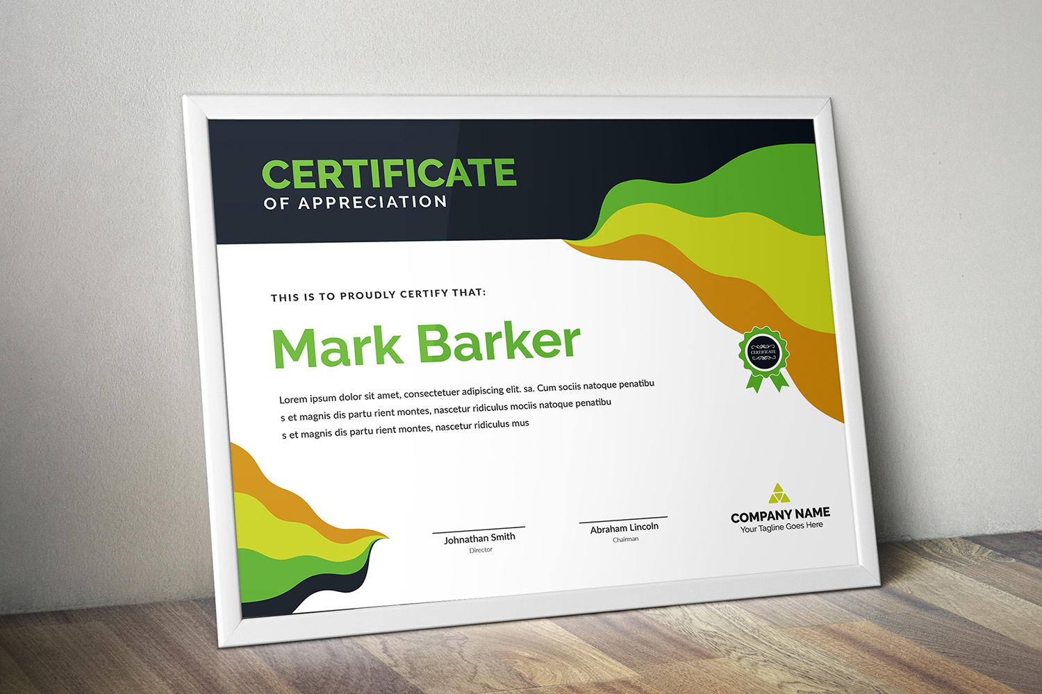 Download Шаблон сертификата "Wavy Certificate Template" / Wavy Certificate Template - Шаблон сертификата на тему графика certificate,corporate,decorative,diploma,elegant,excellence,frame,graduation,green,modern,multicolor,ornament,ornaments,paper,print,ready,template,professional,red,simple