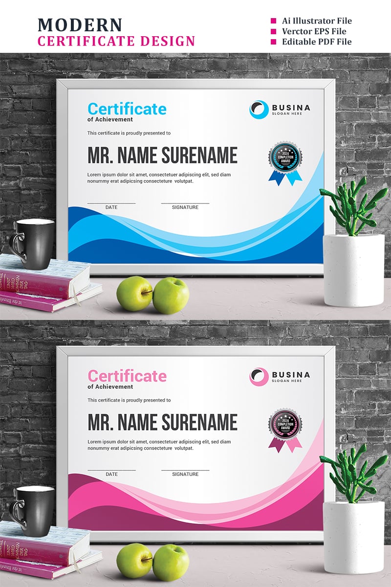 Download Шаблон сертификата "Wavy Design Certificate Template" / Wavy Design Certificate Template - Шаблон сертификата на тему графика achievement appreciation award diploma completion acknowledgement certificates eyelash nail extension modern luxury rainbow professional training red blue gold green yellow