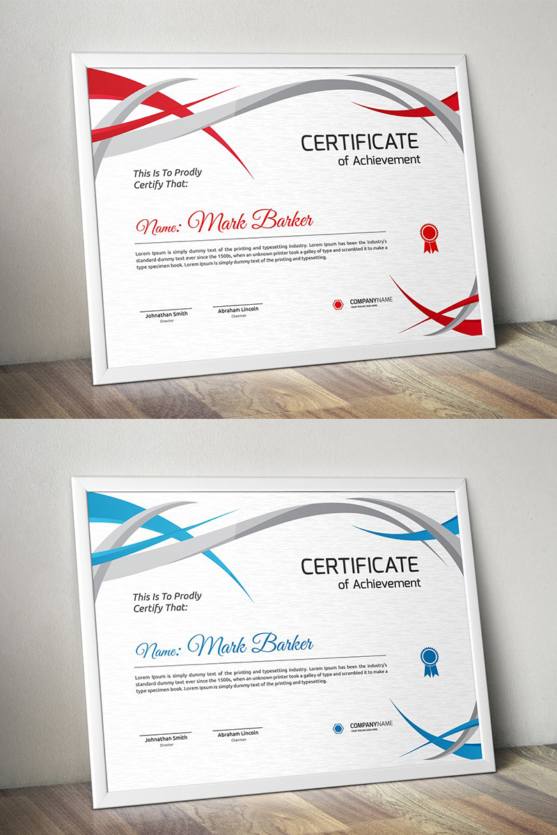 Download Шаблон сертификата "Wavy Elements Certificate Template" / Wavy Elements Certificate Template - Шаблон сертификата на тему графика certificate corporate decorative diploma elegant excellence frame graduation green modern multicolor ornament ornaments paper print ready template professional red simple