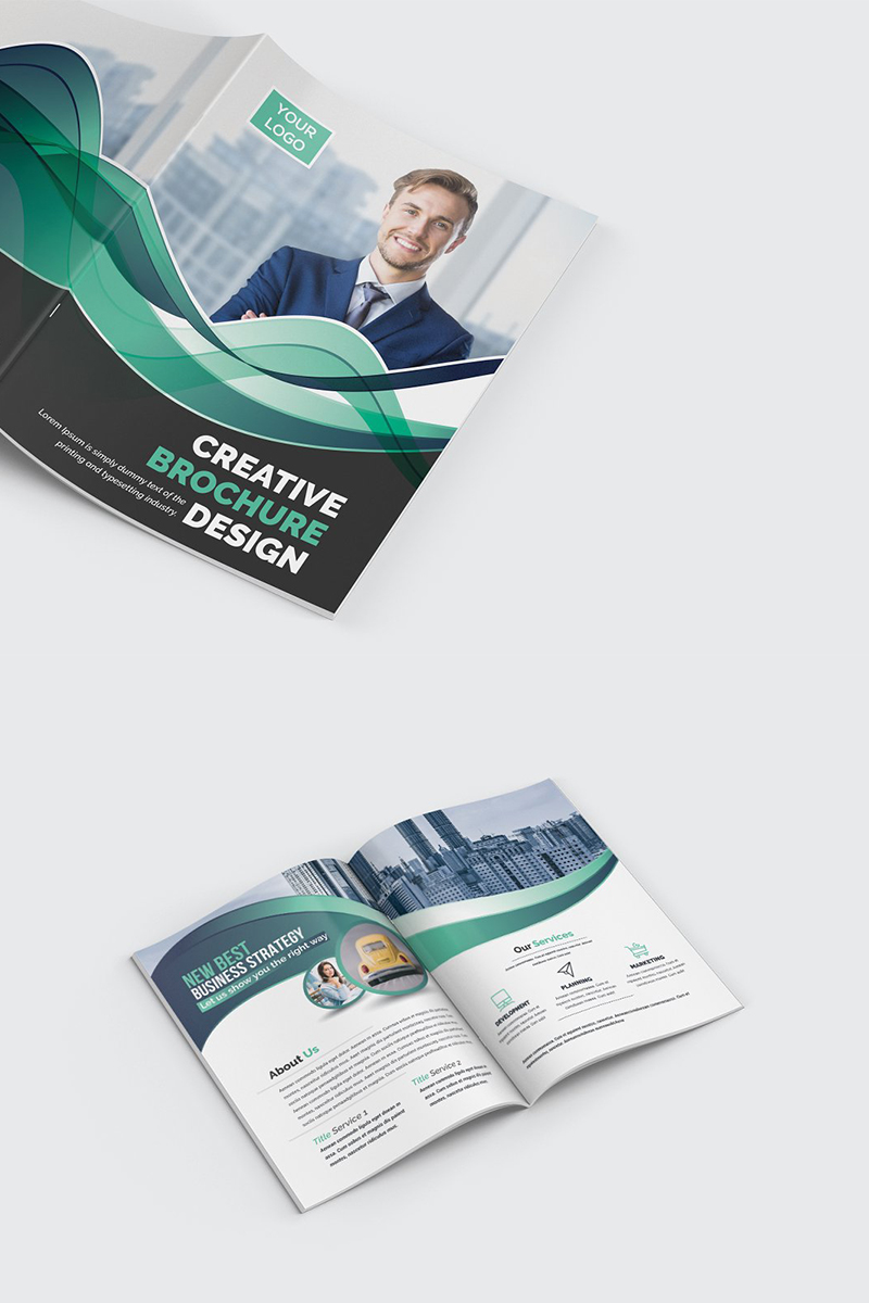 Download Фирменный стиль "Wavy Modern Bifold Brochure - Corporate Identity Template" / Wavy Modern Bifold Brochure - Corporate Identity Template - Фирменный стиль на тему графика abstract agency bi-fold brochure bifold blue business clean company profile corporate creative creativity fold gradient green market marketing modern multipurpose