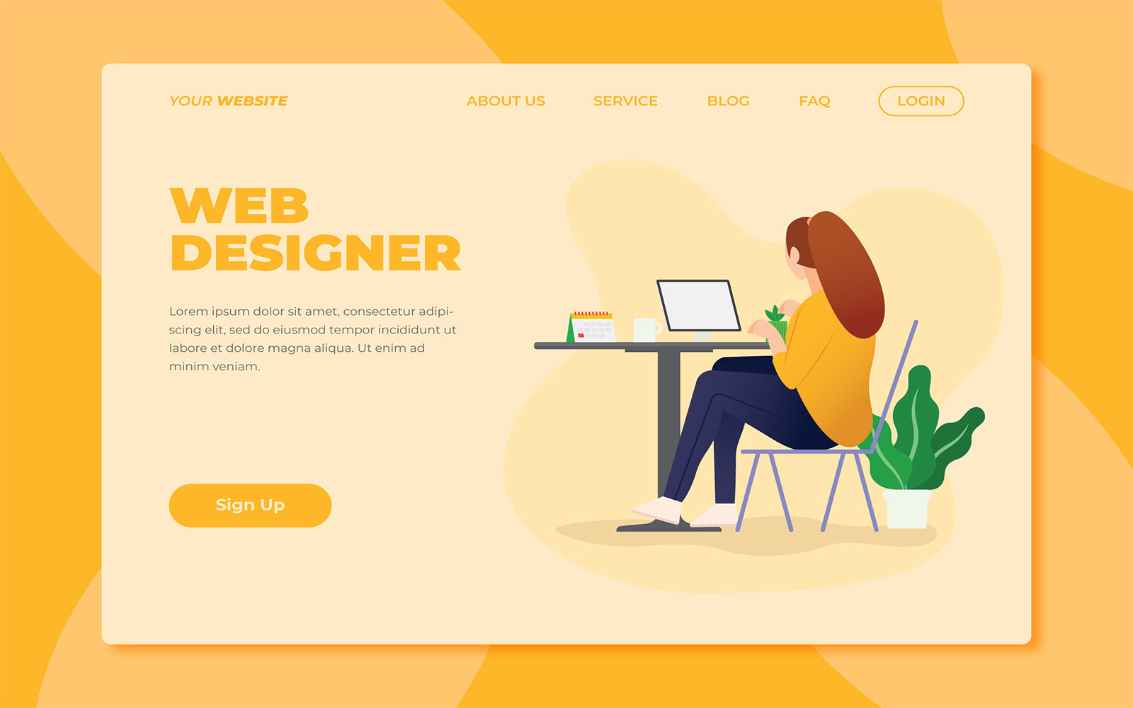 Download Фирменный стиль "Web Designer - Landing Page KF - Corporate Identity Template" / Web Designer - Landing Page KF - Corporate Identity Template - Фирменный стиль на тему графика landing page,template,hiring,corporate,yellow,illustration,minimalist,clean,agency,business