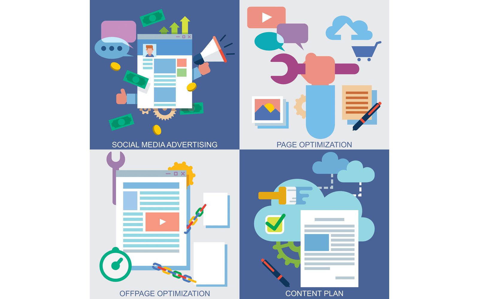 Download Иллюстрация "Web Icons Set for Page Optimization - Illustration" / Web Icons Set for Page Optimization - Illustration - Иллюстрация на тему графика icon,computer,design,flat,media,social,website,web,site,page,internet,technology,set,vector,illustration,graphic,infographic,symbol,concept,element