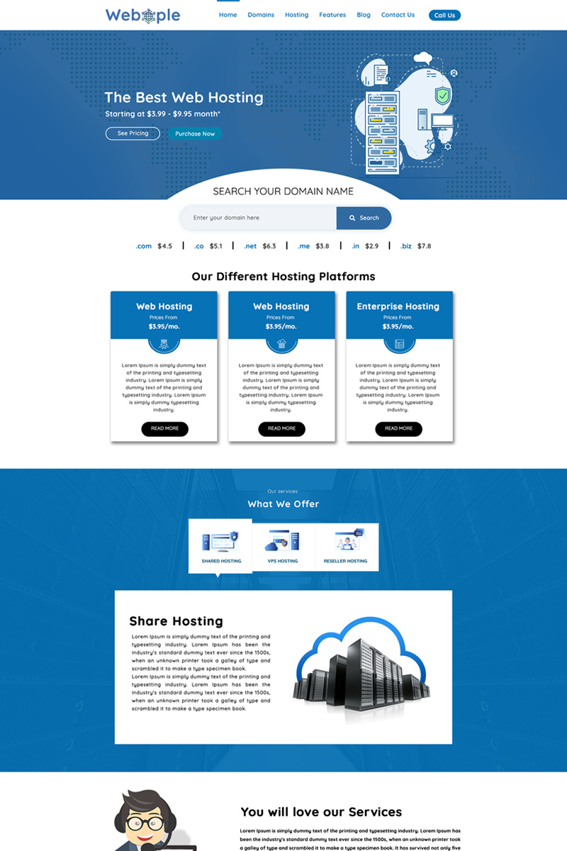 Download PSD шаблон "Webople - Domain & Hosting PSD Template" / Webople - Domain & Hosting PSD Template - PSD шаблон на тему доменный регистратор domain hosting it company technology psd photoshop website design template