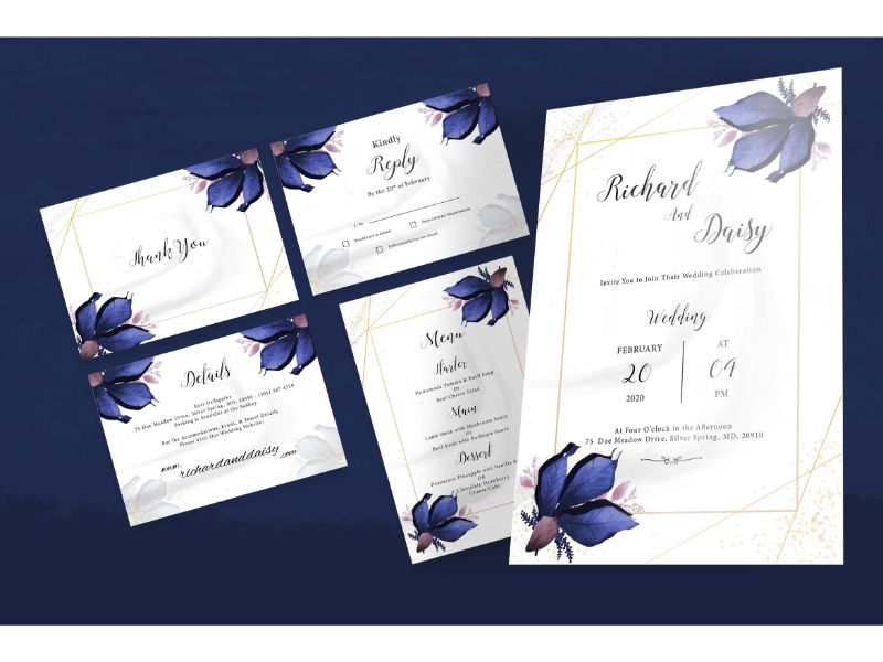 Download Фирменный стиль "Wedding Invitation 9 Blue Flower - Corporate Identity Template" / Wedding Invitation 9 Blue Flower - Corporate Identity Template - Фирменный стиль на тему графика card,wedding,design,invitation,illustration,vector,greeting,invite,celebration,marriage,set,romantic,royal,lux,glamour
