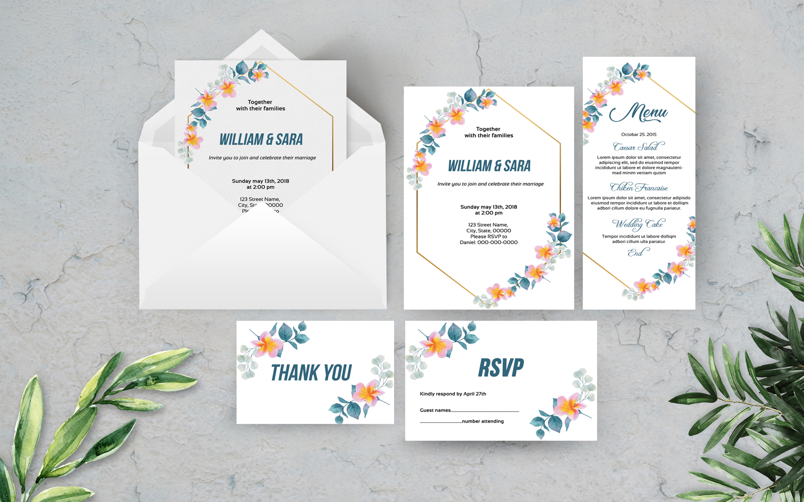 Download Фирменный стиль "Wedding Invitation Set - Corporate Identity Template" / Wedding Invitation Set - Corporate Identity Template - Фирменный стиль на тему графика wedding,invitation,set,suite,menu,rsvp,thank you,card,invite,word,psd,docx,floral,flower,bridal