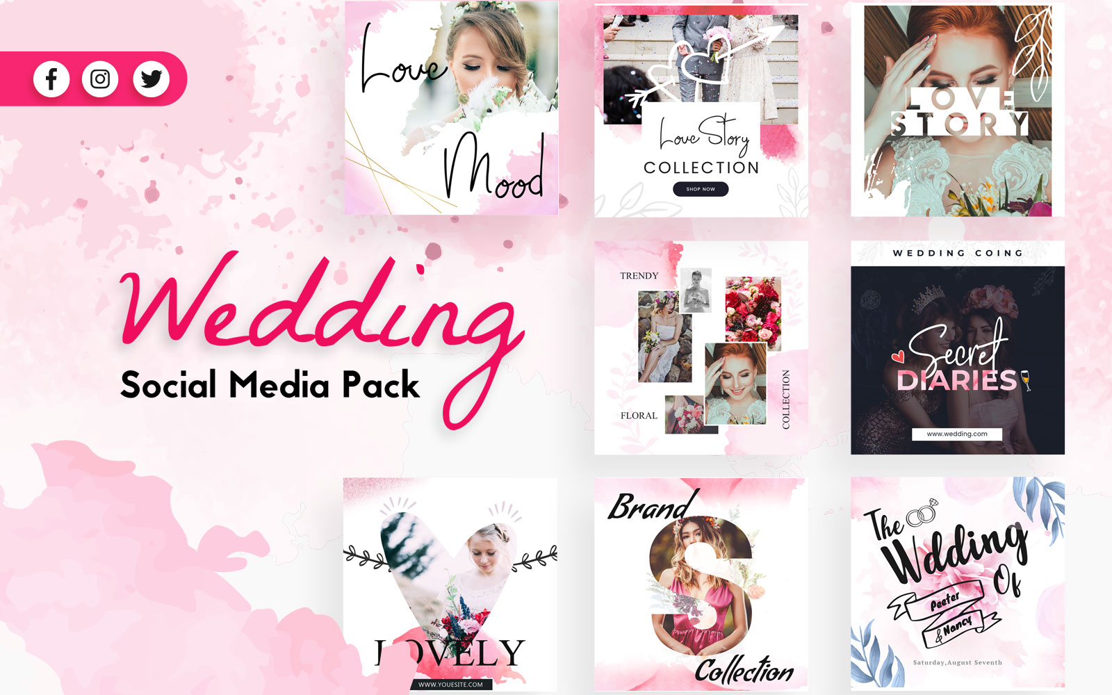 Download Шаблон для соцсетей "Wedding Social Media Template" / Wedding Social Media Template - Шаблон для соцсетей на тему графика wedding,social,media,banners,post,banner,pack,kit,template,templates,facebook,twitter,instagram,offers,celebration
