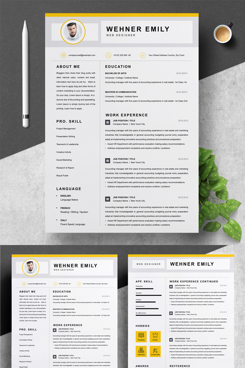 Download Резюме "Wehner Resume Template" / Wehner Resume Template - Резюме на тему графика 1 page resume 2 clean cv cover letter design template illustrator eps mac pages microsoft word modern photoshop psd professional