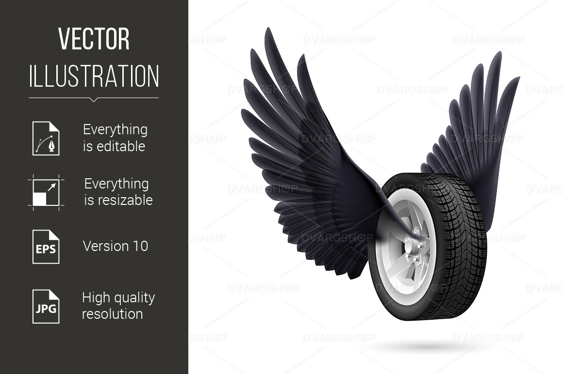 Download Vector "Wheel with Wings - Vector Image" / Wheel with Wings - Vector Image - Vector на тему графика wheel,background,with,wings,isolated,white,transport,motor,steel,illustration,metal,vehicle,sticker,sport,black,symbol,label,service,contour,vintage