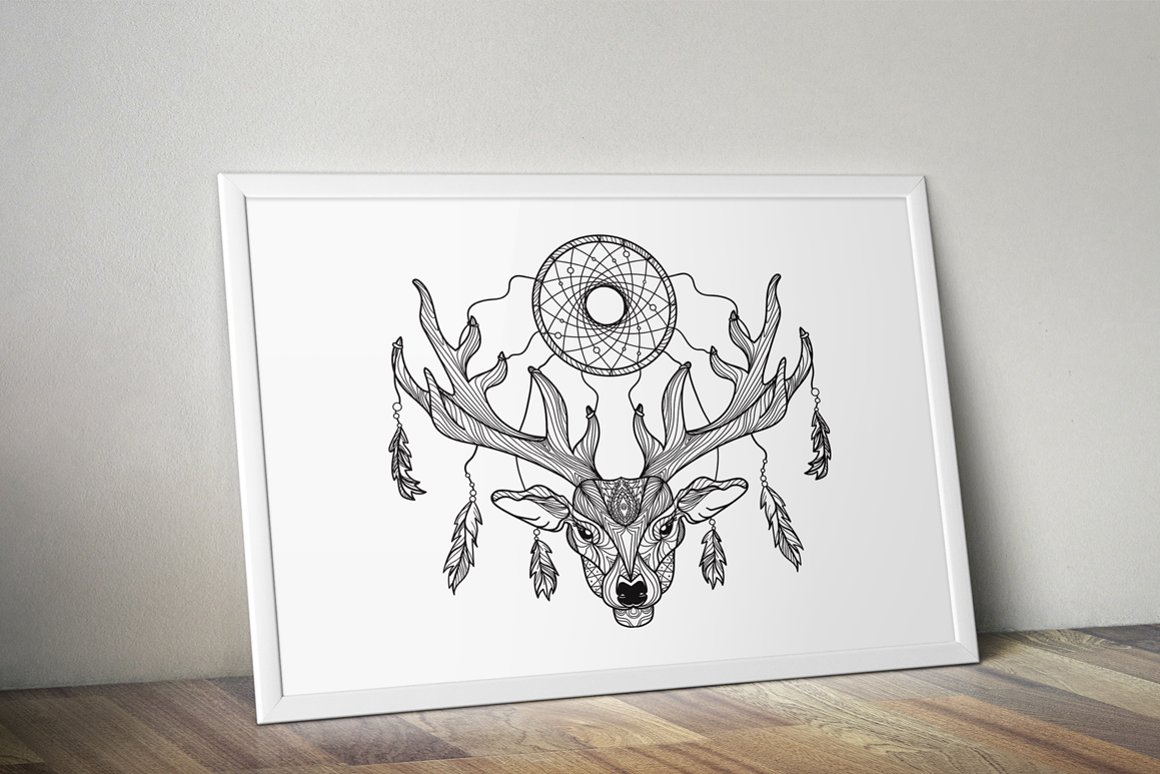 Download Иллюстрация "Wild and Free Deer - Illustration" / Wild and Free Deer - Illustration - Иллюстрация на тему графика animal,deer,symbol,illustration,vector,antler,wild,decorative,isolated,indian,ethnic,horn,nature,art,dreamcatcher,wildlife,dream,drawing,tattoo,artwork
