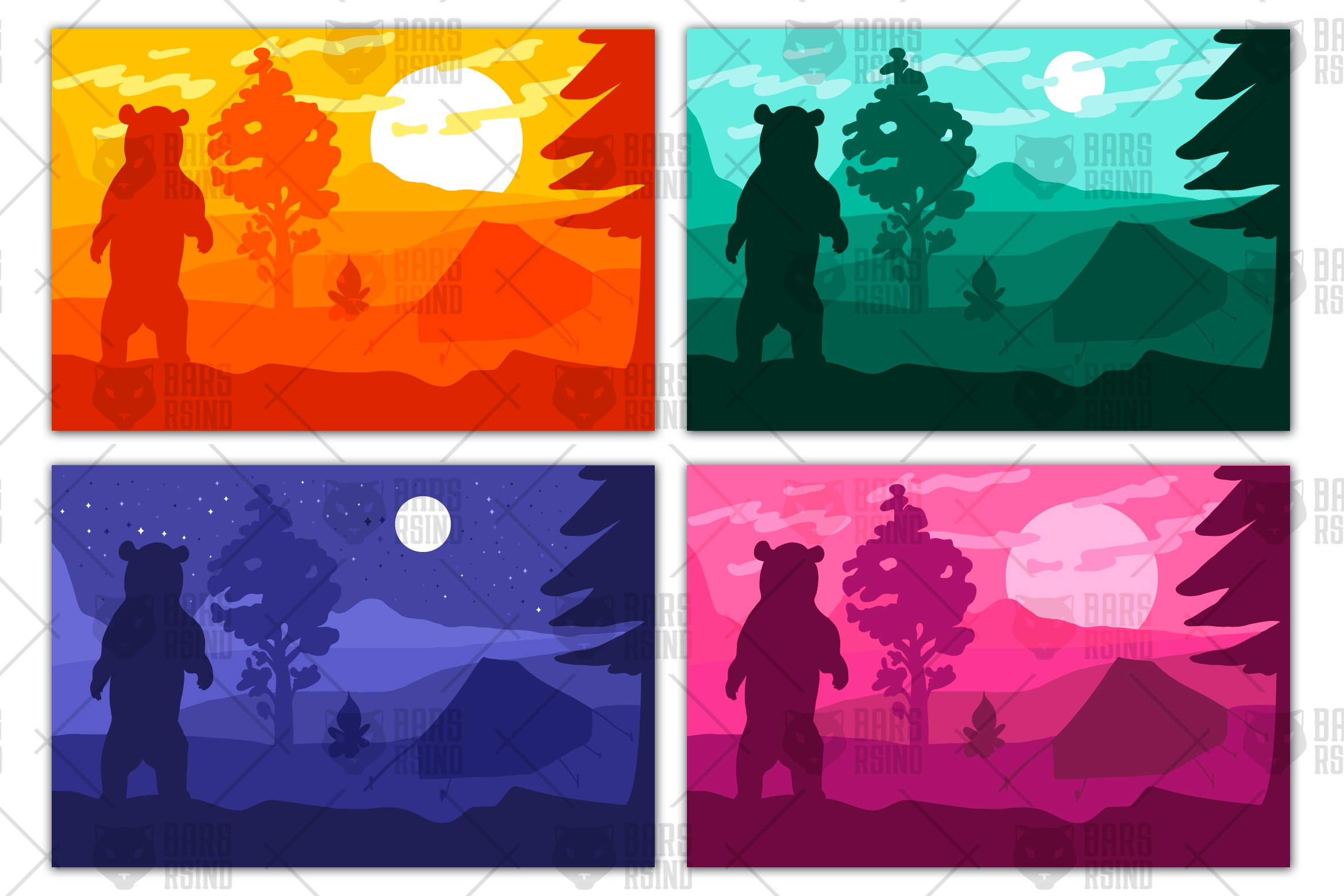 Download Vector "Wild bear in forest camp - Vector Image" / Wild bear in forest camp - Vector Image - Vector на тему графика vintage,illustration,poster,retro,country,nature,summer,vector,old,travel,tree,forest,background,vacation,camping,mountain,outdoor,fire,silhouette,landscape,wood,adventure,park,animal,mammal,