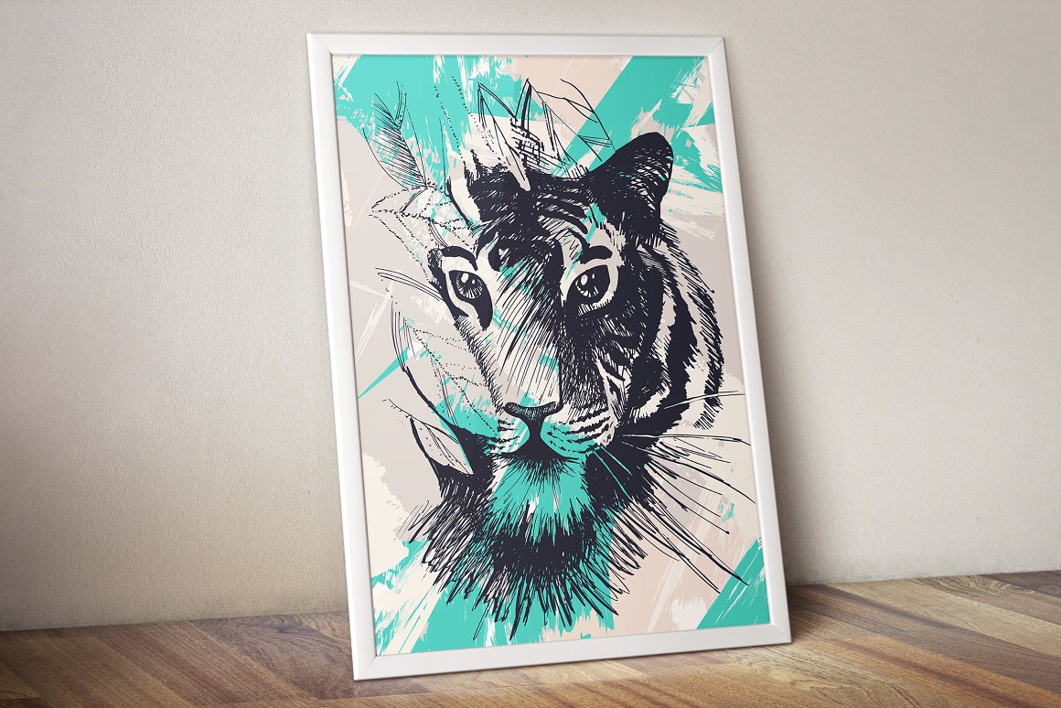 Download Иллюстрация "Wild Tiger In Jungles - Illustration" / Wild Tiger In Jungles - Illustration - Иллюстрация на тему графика tiger,decoration,mammal,texture,cat,wild,jungle,vintage,retro,grunge,power,vector,symbol,africa,illustration,decorative,print,art,style,hipster
