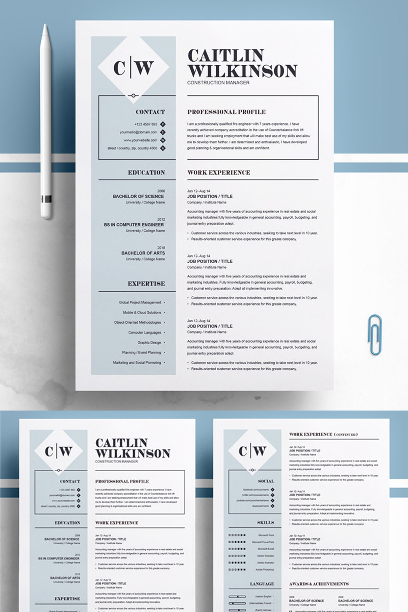 Download Резюме "Wilkinson Resume Template" / Wilkinson Resume Template - Резюме на тему графика 1 page resume 2 3 clean cover letter creative illustrator eps mac pages microsoft word modern photoshop psd professional design