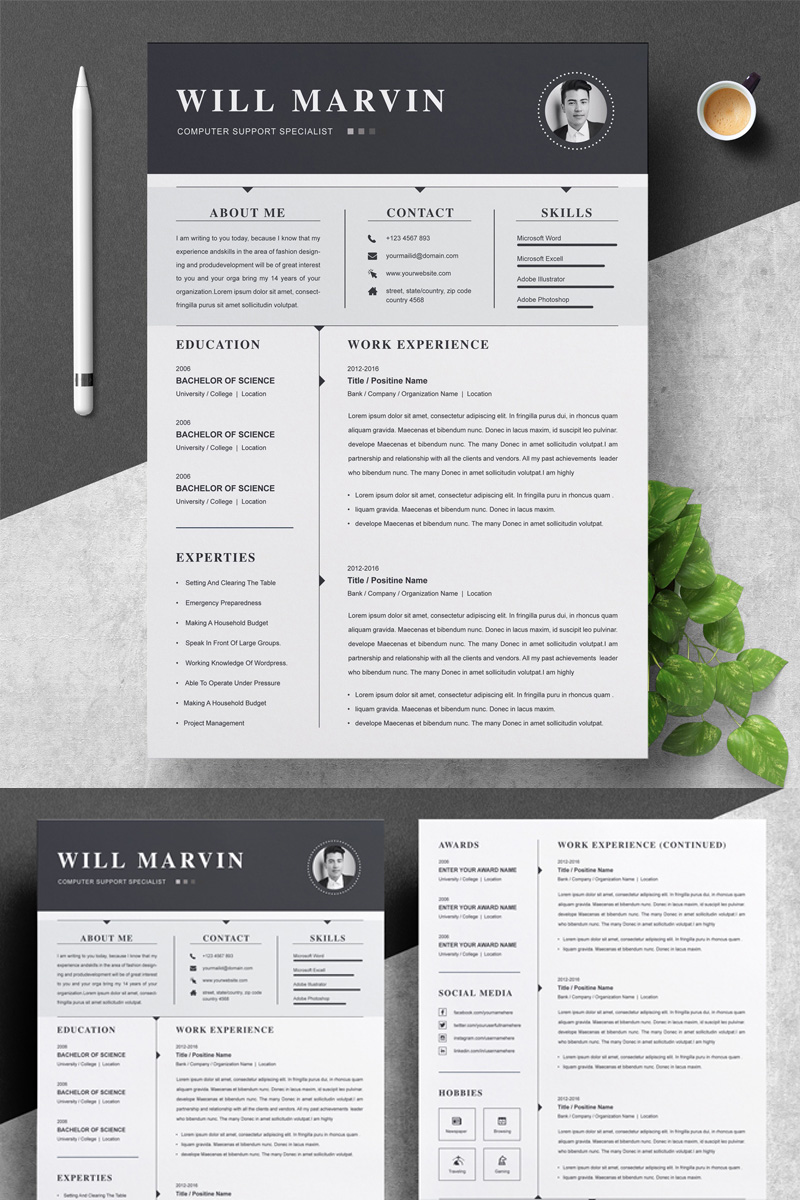 Download Резюме "Will Marvin Resume Template" / Will Marvin Resume Template - Резюме на тему графика 1 page resume 2 clean cv cover letter design template illustrator eps mac pages microsoft word modern photoshop psd professional