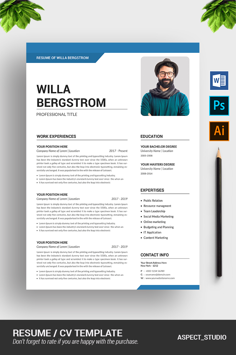 Download Резюме "Willa Bergstrom Resume Template" / Willa Bergstrom Resume Template - Резюме на тему графика 1,page,resume,2,3,clean,cover,letter,creative,cv,template,design,document,microsoft,word,minimalist,modern,photoshop,psd,professional