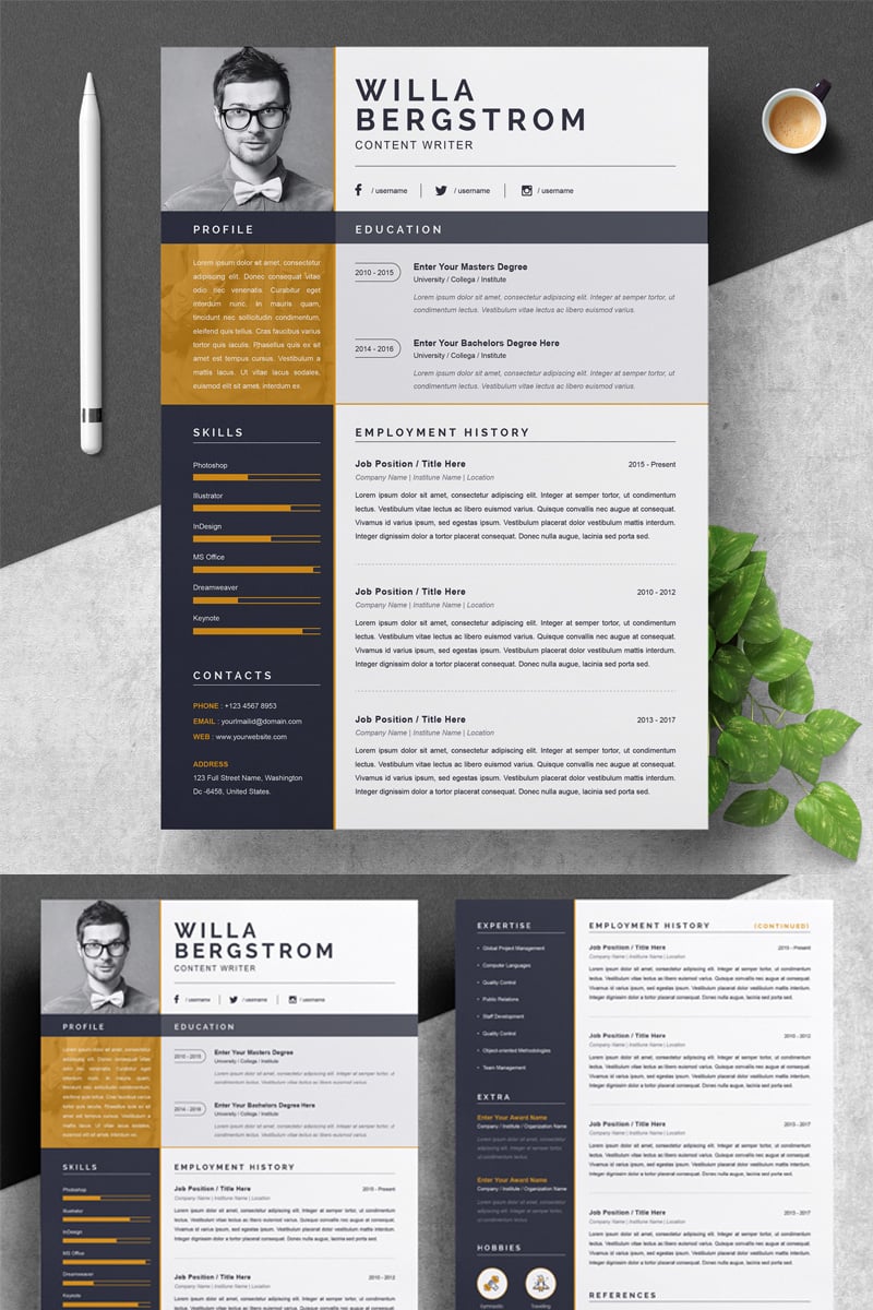 Download Резюме "Willa Resume Template" / Willa Resume Template - Резюме на тему графика 1 page cv resume 2 3 apple clean cover letter curriculum vitae template illustrator eps mac pages microsoft word minimal
