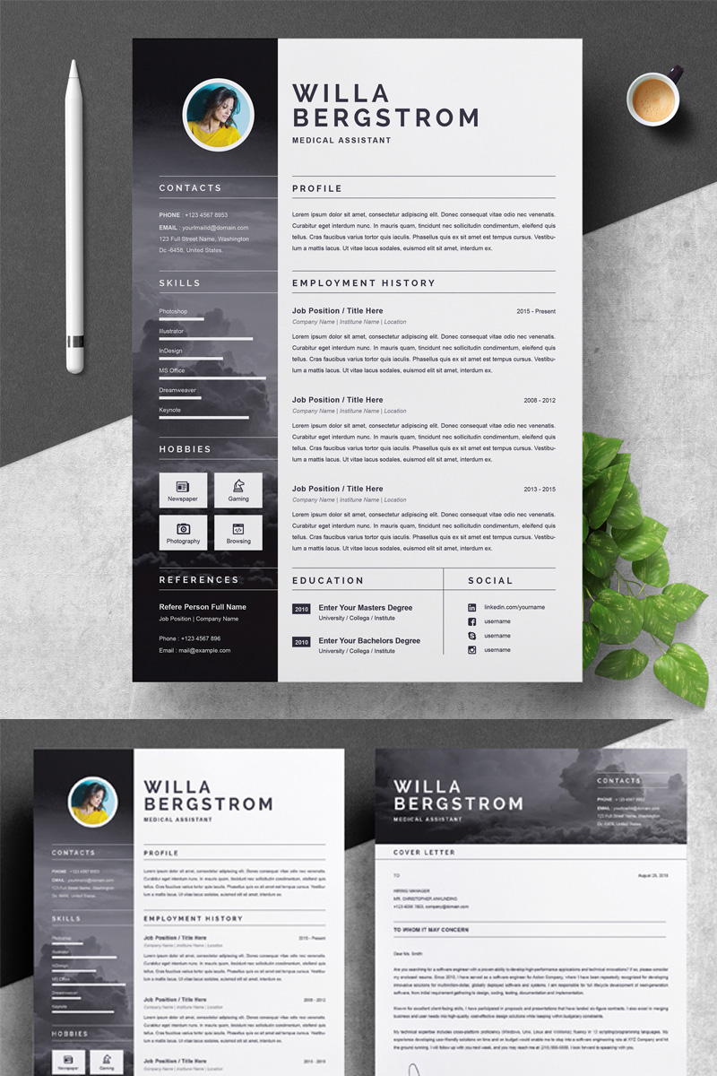 Download Резюме "Willa Resume Template" / Willa Resume Template - Резюме на тему графика 1 page cv resume 2 3 apple clean cover letter curriculum vitae template illustrator eps mac pages microsoft word minimal