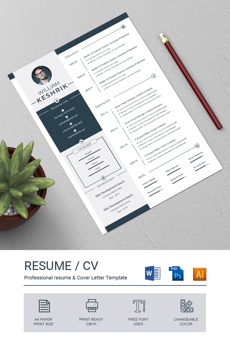 Download Резюме "William Keshrik Resume Template" / William Keshrik Resume Template - Адаптивный Резюме на тему графика resume template cv clean modern a4 doc elegant indesign infographic professional creative design minimal pages portfolio word us letter