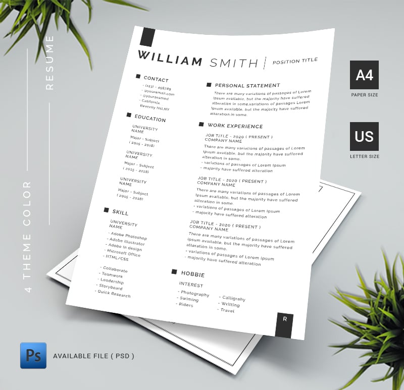 Download Резюме "William Smith Resume Template" / William Smith Resume Template - Резюме на тему графика a4resume,cleancv,coverletter,creativecv,creativeresume,curriculumvitae,cvdesign,cvtemplate,professionalresume,resume,simpleresume,usletter,employment,indd,jobresume,landscape,moderncv,modernr