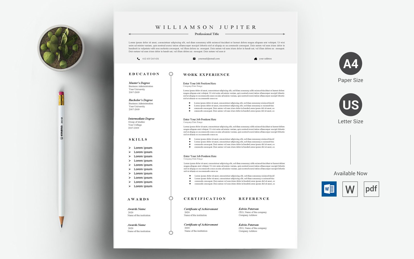 Download Резюме "Williamson Jupiter - CV & Resume Template" / Williamson Jupiter - CV & Resume Template - Резюме на тему графика a4,black resume,bright,clean,cv,cover letter,creative,curriculum,vitae,design,template,docx,editable,elegant,job,light,minimal,word,modern,new