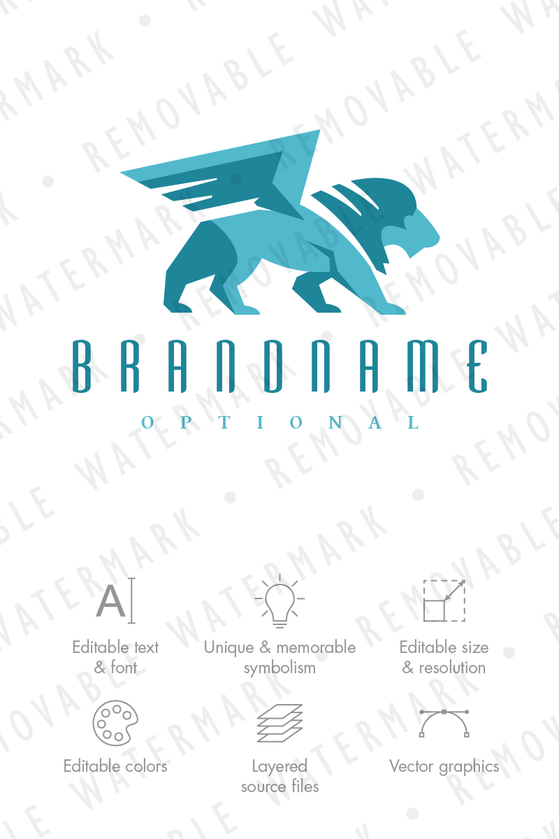 Download Шаблон логотипа "Winged Lion Logo Template" / Winged Lion Logo Template - Шаблон логотипа на тему графика lion winged sphinx power griffin support mythical protection courage strength dominance logo design template consulting investing security guardian leadership honesty