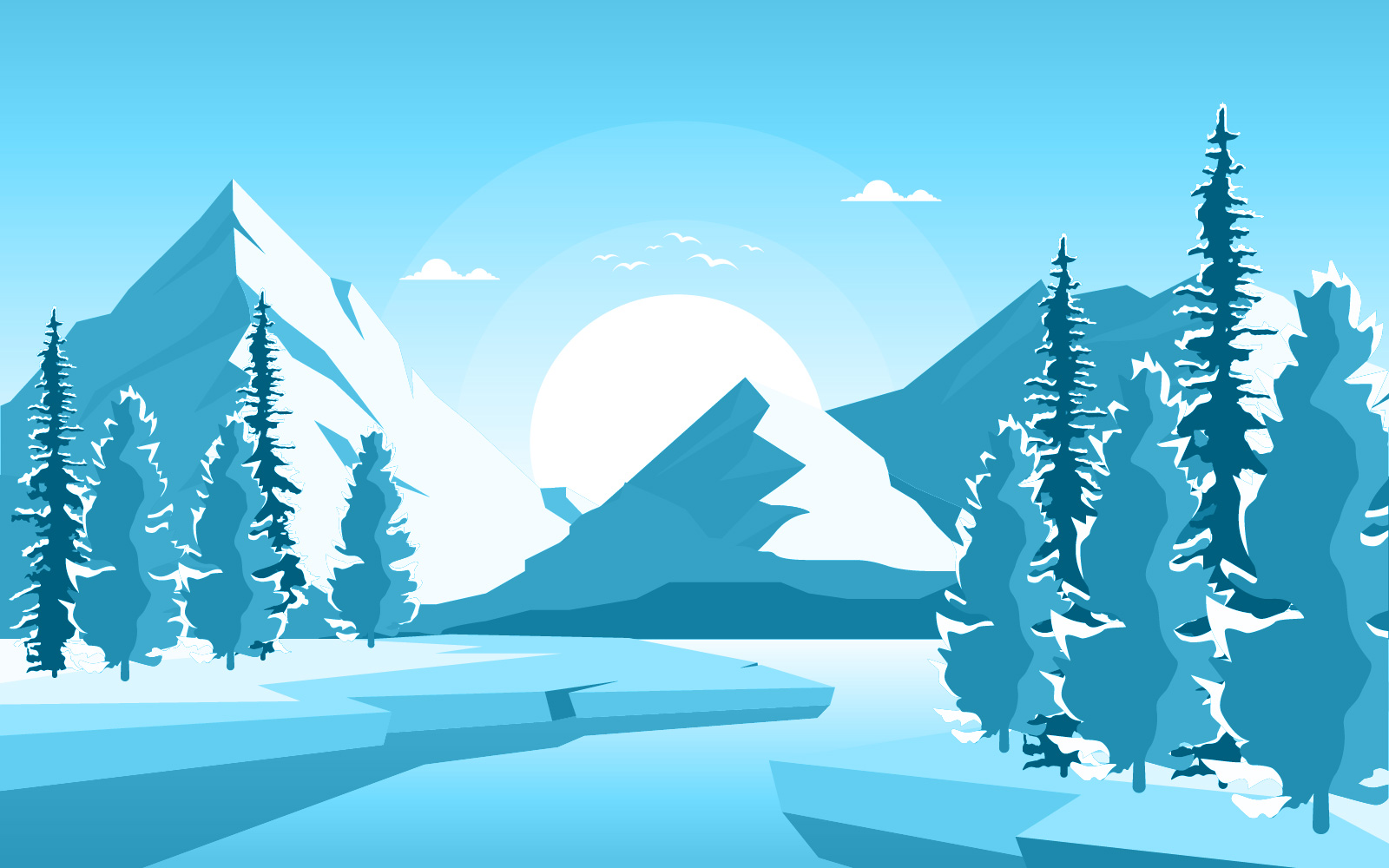 Download Иллюстрация "Winter Frozen Lake - Illustration" / Winter Frozen Lake - Illustration - Иллюстрация на тему графика winter,snow,pine,mountain,frozen,lake,nature,landscape,illustration,vector,sky,background,forest,design,scenery,snowy,cold,ice,holiday,frost
