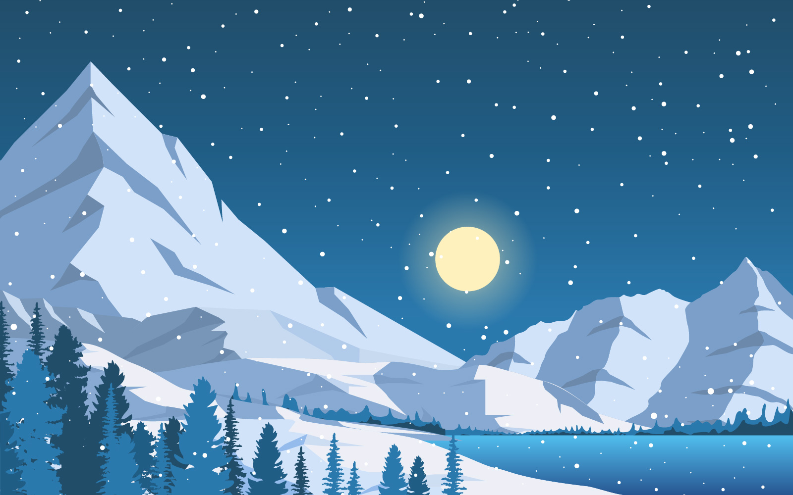 Download Иллюстрация "Winter Lake Snowfall - Illustration" / Winter Lake Snowfall - Illustration - Иллюстрация на тему графика winter,snow,pine,mountain,lake,snowfall,nature,landscape,illustration,vector,sky,background,forest,design,scenery,snowy,frozen,cold,ice,holiday