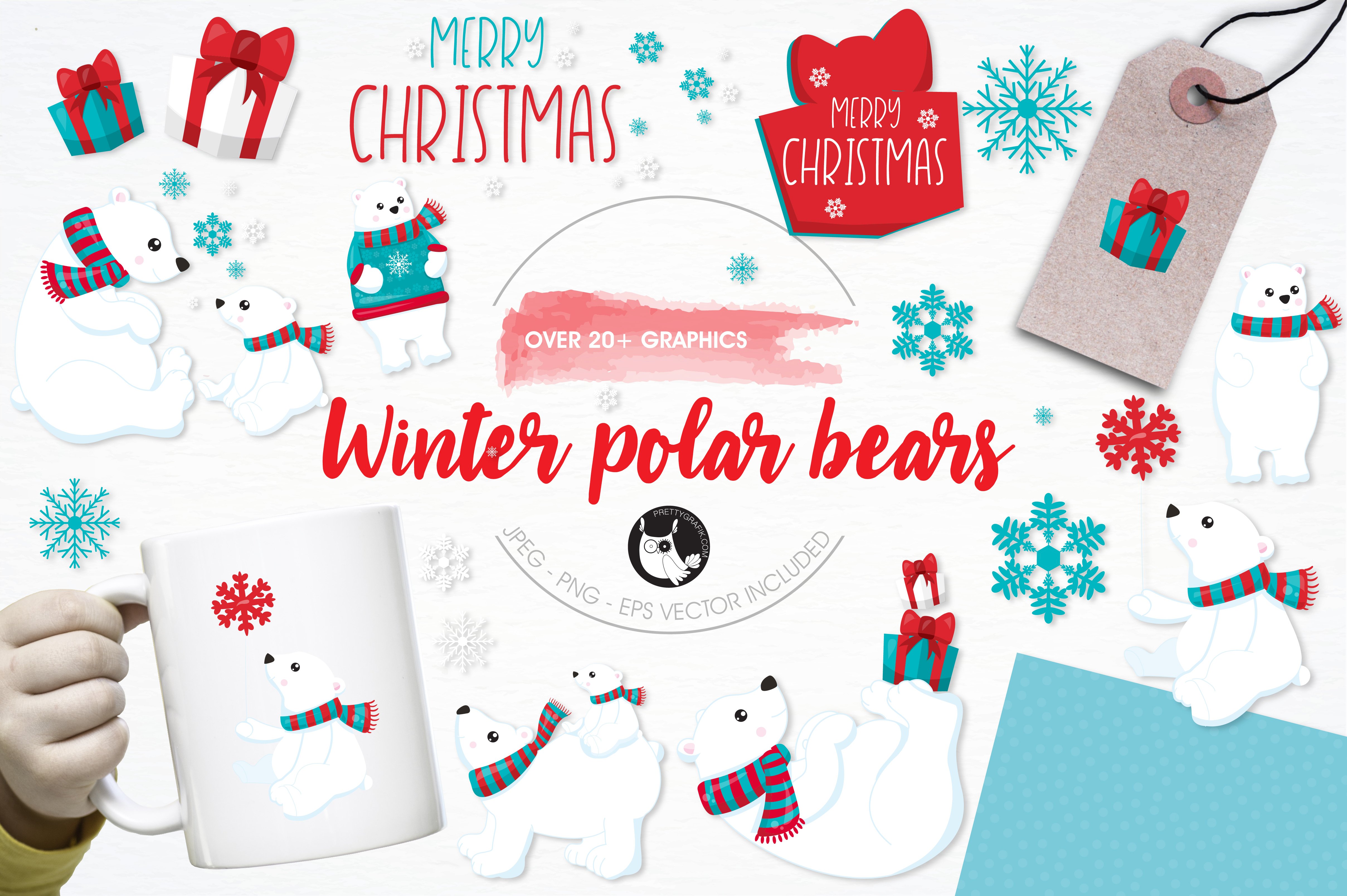 Download Vector "Winter polar bear illustration pack - Vector Image" / Winter polar bear illustration pack - Vector Image - Vector на тему графика christmas,illustration,winter,vector,graphics,clipart,clip art,snow,icons,snowflake,eps,presents,prettygrafik,polar bear