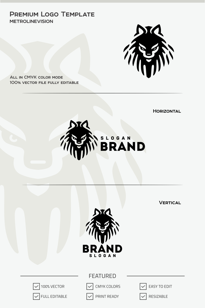 Download Шаблон логотипа "Wolf Head Logo Template" / Wolf Head Logo Template - Шаблон логотипа на тему графика animal app electric guard hardware howling moon network producer product professional safety security service sky social wolf sport strong wild