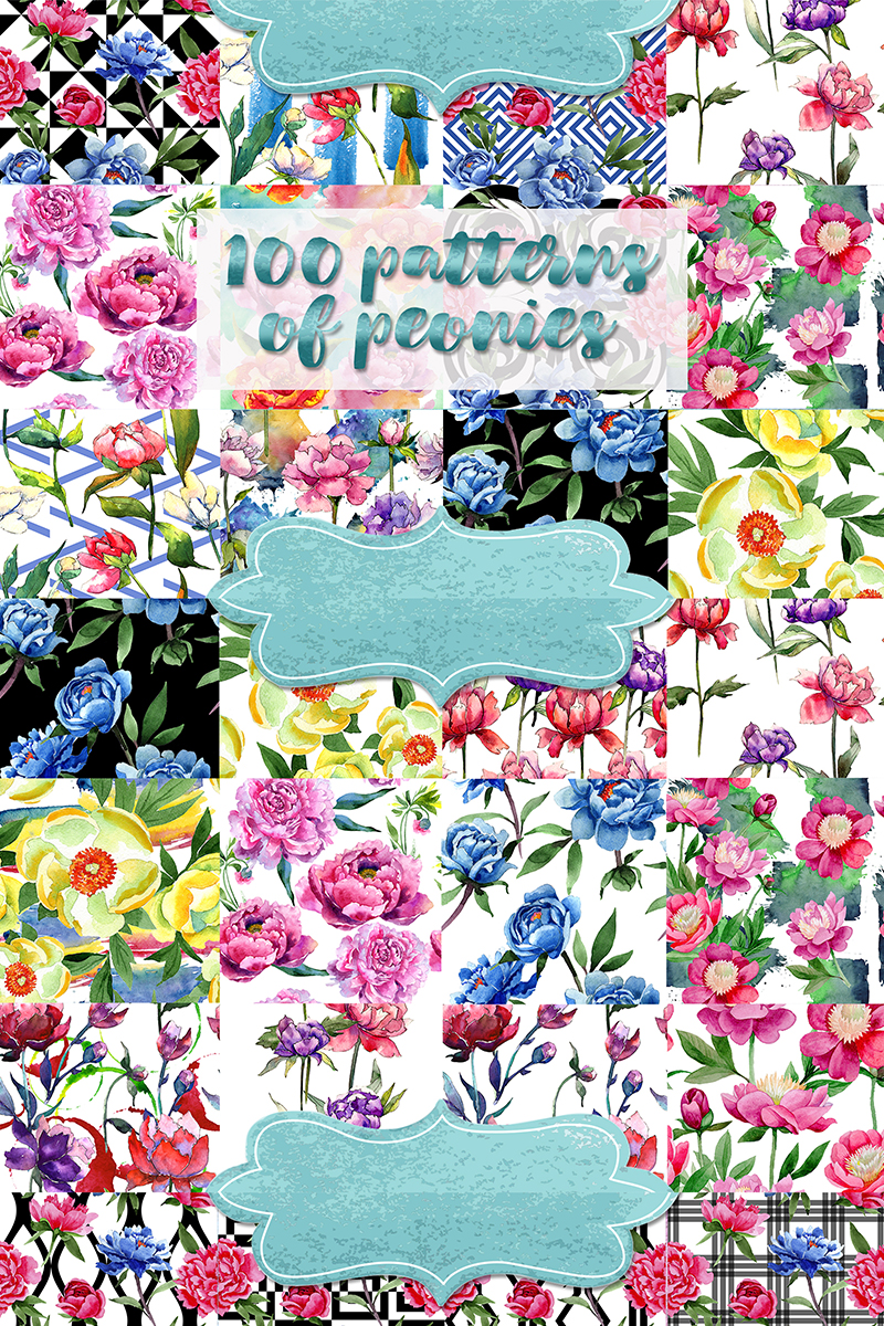 Download Иллюстрация "Wonderful 100 Patterns of Peonies JPG Set - Illustration" / Wonderful 100 Patterns of Peonies JPG Set - Illustration - Иллюстрация на тему графика pattern watercolor floral peony seamless flower flowers background rose pink illustration peonies vintage design botanical vector summer blossom romantic art