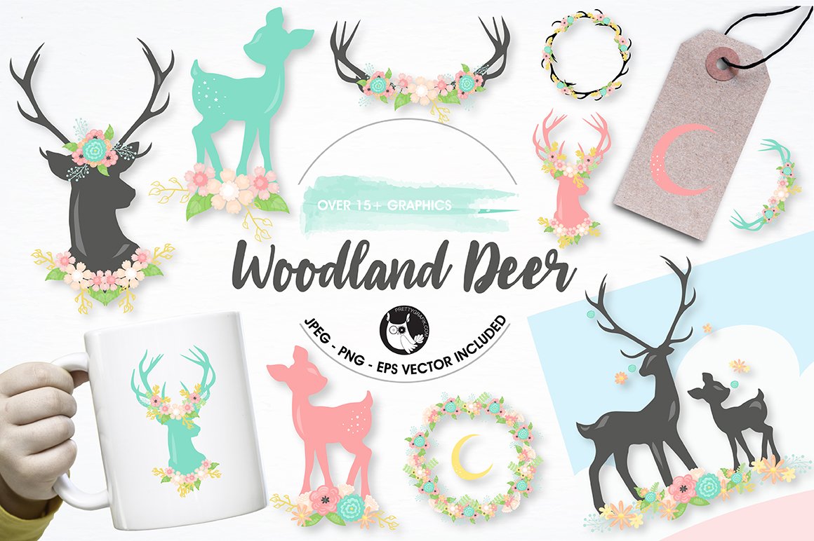 Download Vector "Woodland deer graphics illustrations - Vector Image" / Woodland deer graphics illustrations - Vector Image - Vector на тему графика illustration,scrapbooking,vector,floral,graphics,clipart,moon,clip art,flower,silhouette,icons,dream,deer,wreath,antler,enchanted,eps,images,prettygrafik,baby shower,baby girl,deer head