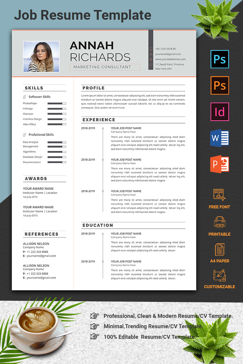 Download Резюме "Word CV Resume Template" / Word CV Resume Template - Резюме на тему графика cv rsume template fully layered a4 paper size modern minimal letter profational creative eaditable word indesign cvdesign docx jobecv elegent