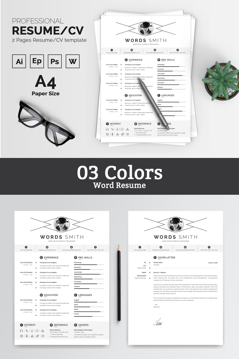 Download Резюме "Words Smith Resume Template" / Words Smith Resume Template - Резюме на тему графика resume cv clean creative word infographic modern professional student mac pages manager template bankers doctors job seekers
