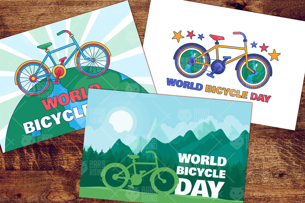 Download Иллюстрация "World Bicycle Day Set - Illustration" / World Bicycle Day Set - Illustration - Иллюстрация на тему графика illustration,poster,nature,vector,sport,flyer,holiday,travel,globe,health,green,environmental,earth,planet,lifestyle,energy,healthy,eco,environment,forest,bicycle,bike,free,transportation,ban