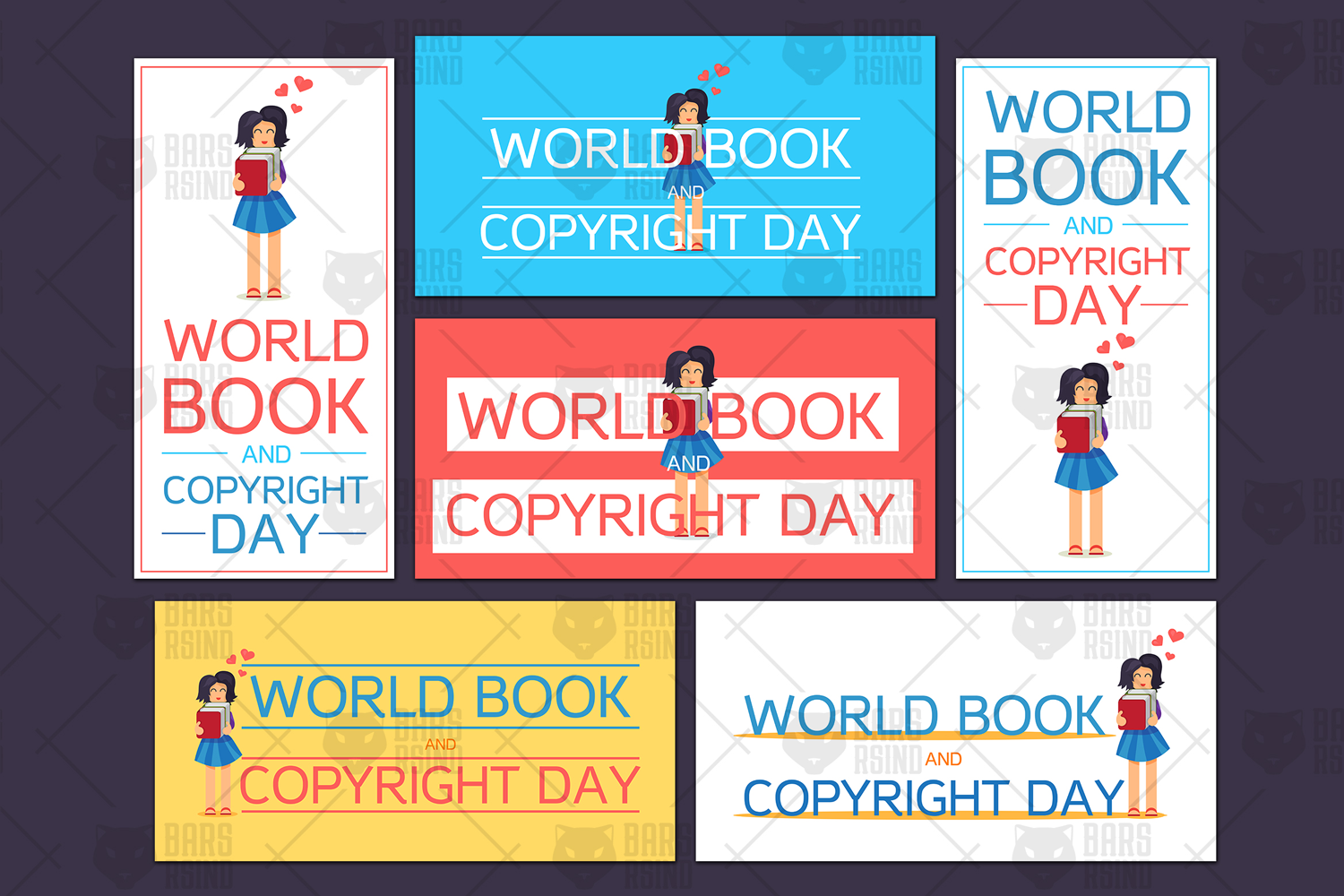 Download Фирменный стиль "World Book and Copyright Day Banners - Corporate Identity Template" / World Book and Copyright Day Banners - Corporate Identity Template - Фирменный стиль на тему графика illustration,sign,book,rustic,vector,editorial,text,art,happy,holiday,child,blue,event,education,school,red,white,calendar,creativity,library,horizontal,vertical,banner,cartoon,world,cover,gi
