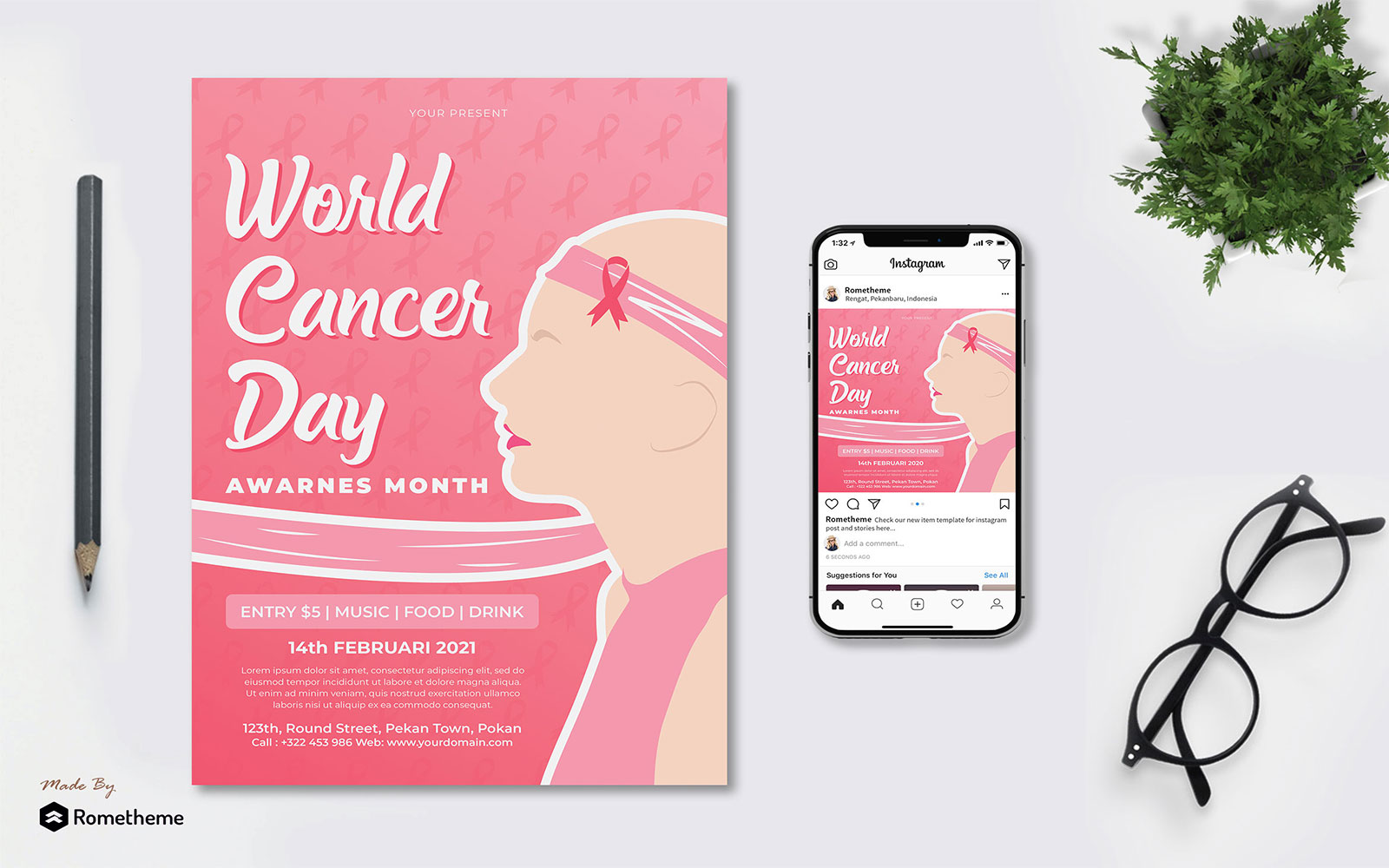 Download Фирменный стиль "World Cancer Day - Flyer KF - Corporate Identity Template" / World Cancer Day - Flyer KF - Corporate Identity Template - Фирменный стиль на тему графика banner,print,design,business,services,promotion,health,volunteer,donate,donation,world,cancer,sick