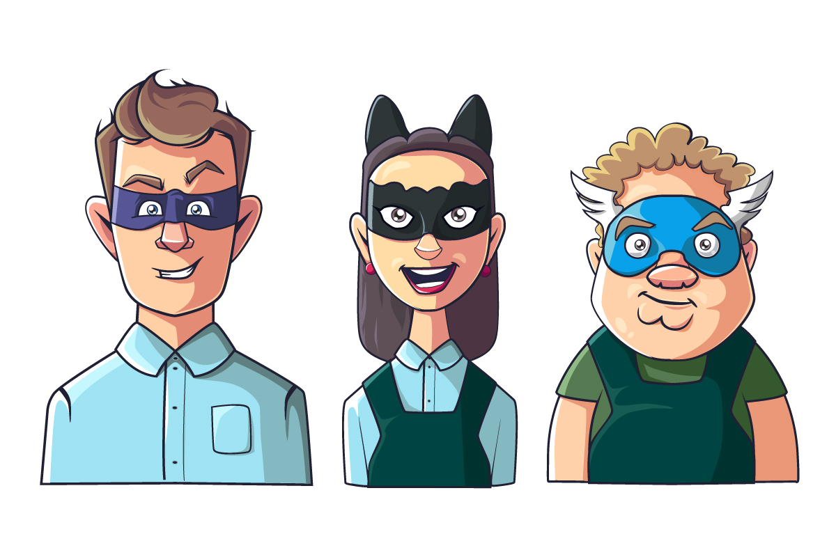 Download Иллюстрация "x3 Characters "Heroes" pack - Illustration" / x3 Characters "Heroes" pack - Illustration - Иллюстрация на тему графика character,heroes,hero,illustration,vector,eps,ai,staff,personnel,art,graphics,characters,pack