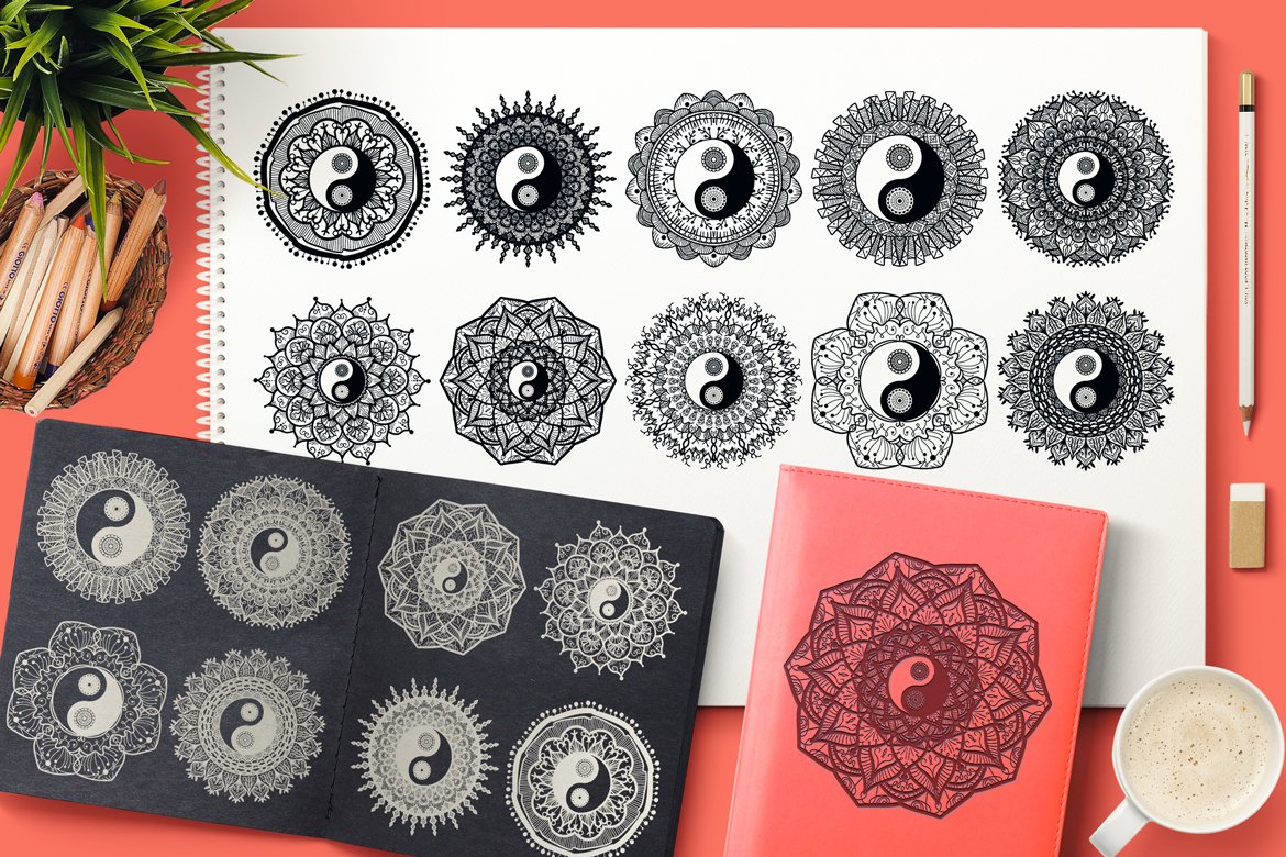 Download Фирменный стиль "Yin Yang Mandalas Set - Corporate Identity Template" / Yin Yang Mandalas Set - Corporate Identity Template - Фирменный стиль на тему графика vintage,sign,vector,boho,art,color,tattoo,ornament,yoga,drawing,meditation,doodle,mandala,indian,ethnic,henna,asian,pattern,chinese,orient,ornate,india,oriental,symbol,religion,spiritual,budd