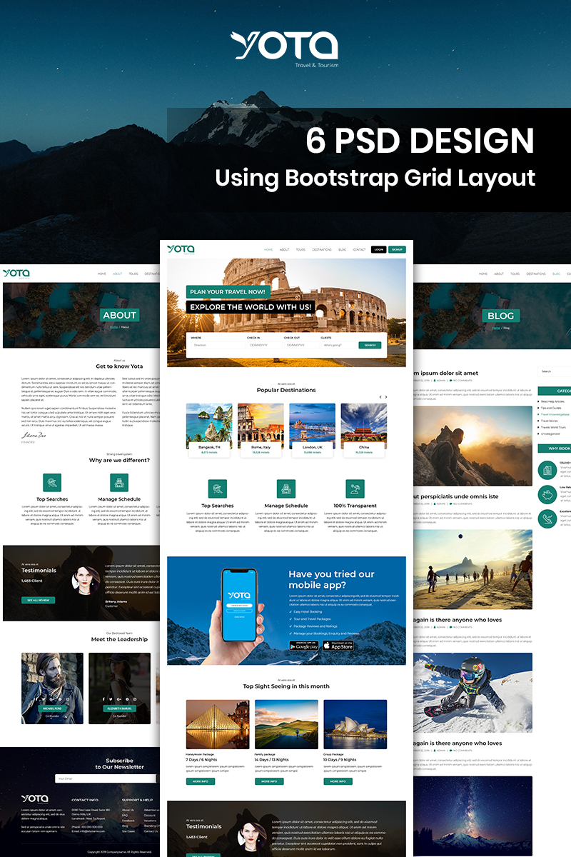 Download PSD шаблон "Yota - Travel & Tour PSD Template" / Yota - Travel & Tour PSD Template - PSD шаблон на тему графика travel tour template theme psd photoshop