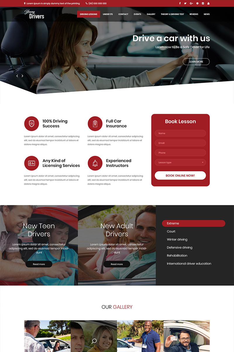 Download PSD шаблон "Young Drivers - Driving School PSD Template" / Young Drivers - Driving School PSD Template - PSD шаблон на тему графика driving school cars theme template psd photoshop