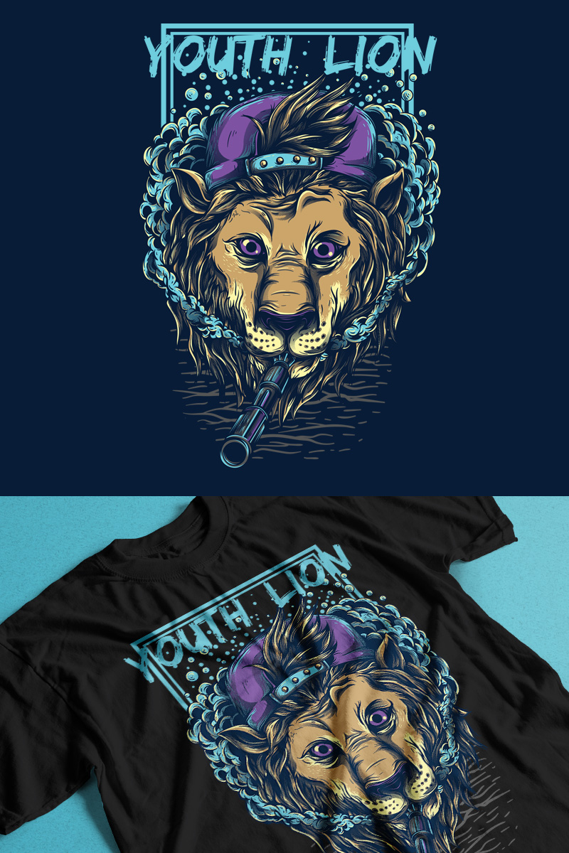 Download T-shirt Design "Youth Lion - T-shirt Design" / Youth Lion - T-shirt Design - T-shirt Design на тему графика illustration t-shirt design artwork apparel merch cartoon events fashion graphics poster mascot festival lion vape product promotional youth street cloud