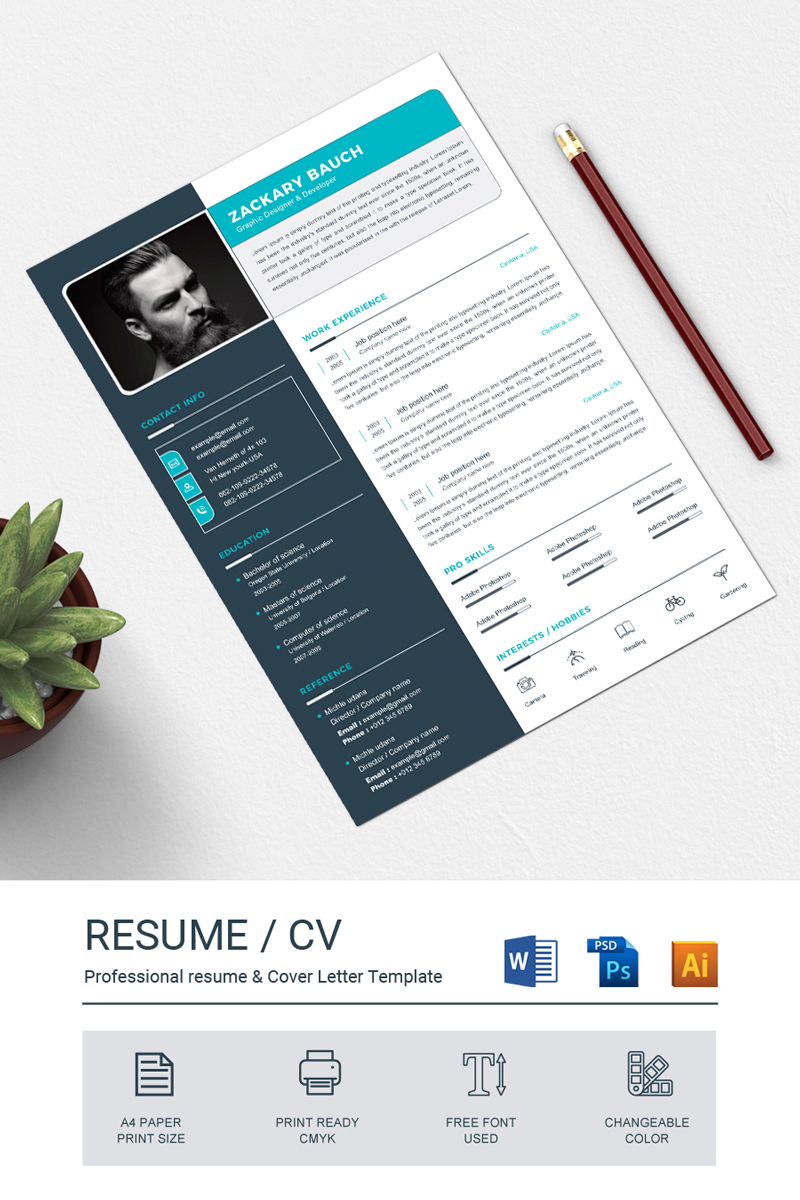 Download Резюме "Zackary Resume Template" / Zackary Resume Template - Адаптивный Резюме на тему графика resume template cv clean modern a4 doc elegant indesign infographic professional creative design minimal pages portfolio word us