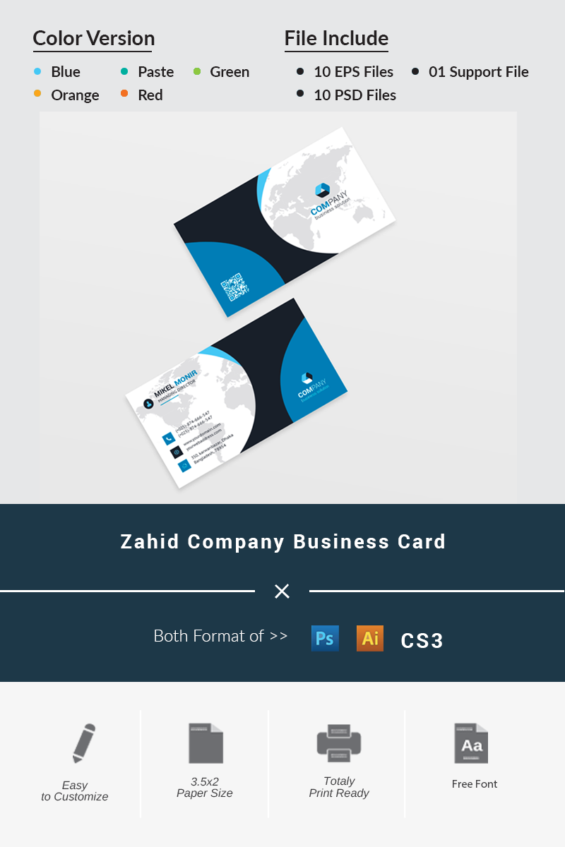 Download Фирменный стиль "Zahid Business Card - Corporate Identity Template" / Zahid Business Card - Corporate Identity Template - Фирменный стиль на тему графика black blue business card design clean style corporate creative cyan elegant green line minimalist modern template orange personal photoshop print