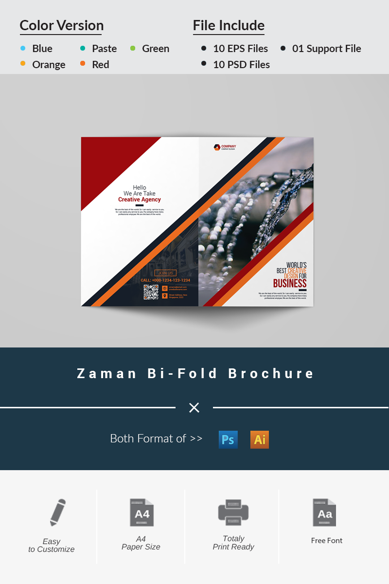 Download Фирменный стиль "Zaman Bi-Fold Brochure - Corporate Identity Template" / Zaman Bi-Fold Brochure - Corporate Identity Template - Фирменный стиль на тему графика a4 agency bi-fold bifold blue brochure business clean colorful company corporate creative design editable folding indesign key visual leaflet lifestyle