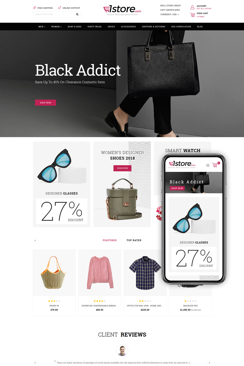 BigCommerce шаблон интернет-магазина - 1Store - Multipurpose BigCommerce Theme powered by Stencil, отлично подойдет для сайтов в области Животные.