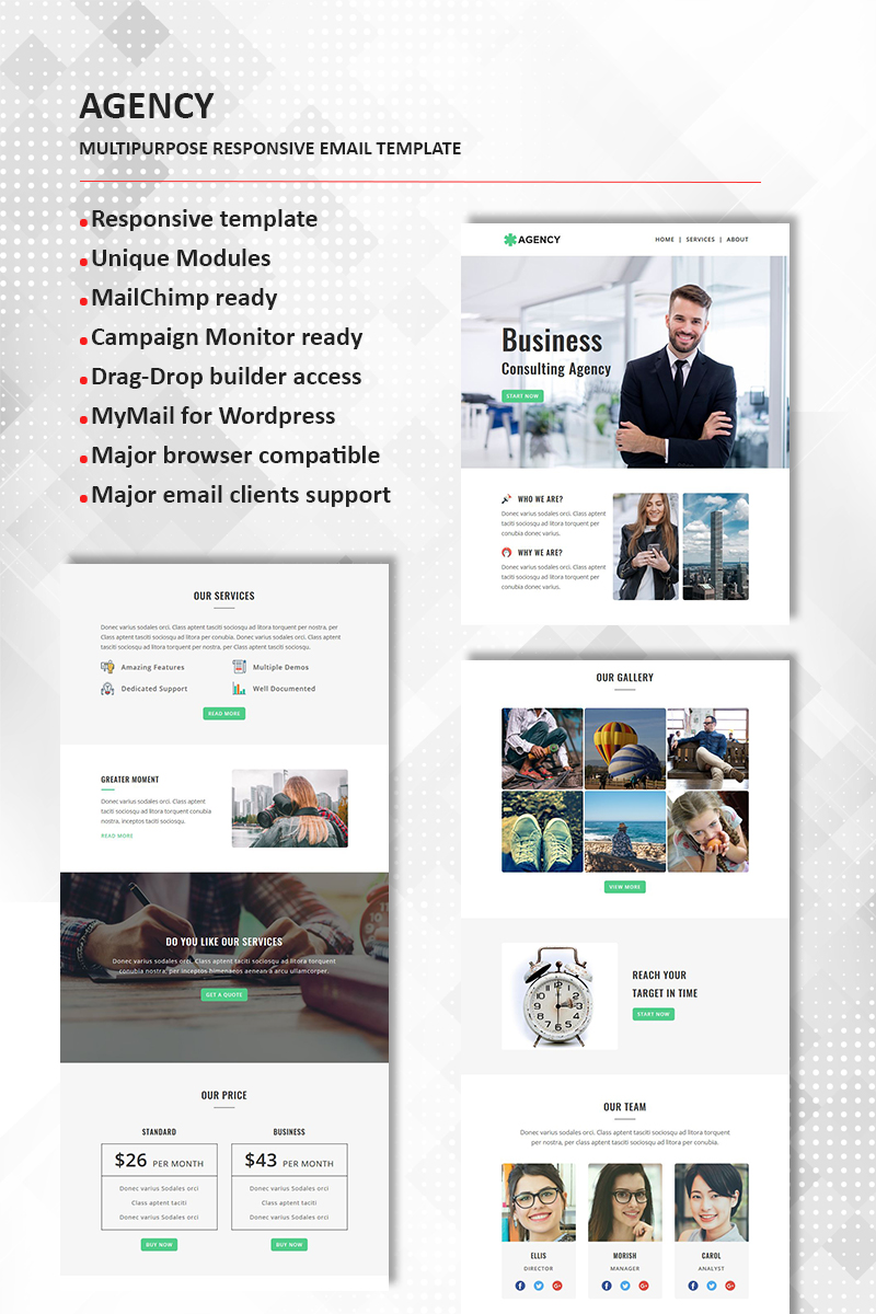 Email шаблон html письма - Agency - Multipurpose Responsive Newsletter Template, отлично подходит для сайтов на тему Бизнес и услуги.