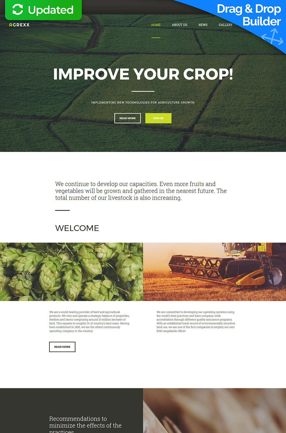 Moto CMS 3 шикарный шаблон - Agrexx - Organic Farm Moto CMS 3 Template, хорошо подходит для сайтов в категории Сельское хозяйство.