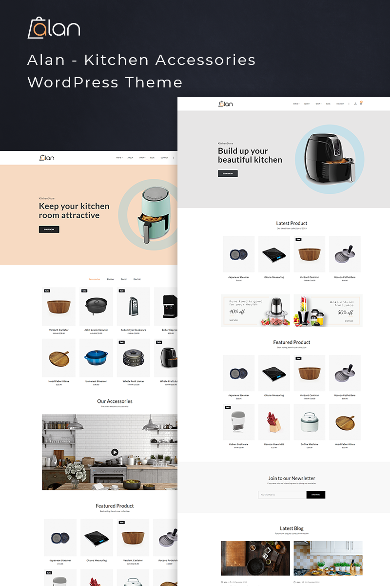 Food Store - превосходно подходит для сайтов в области Магазин еды. WooCommerce шаблон для интернет-магазина на Wordpress - Alan – Kitchen Accessories WooCommerce Theme.